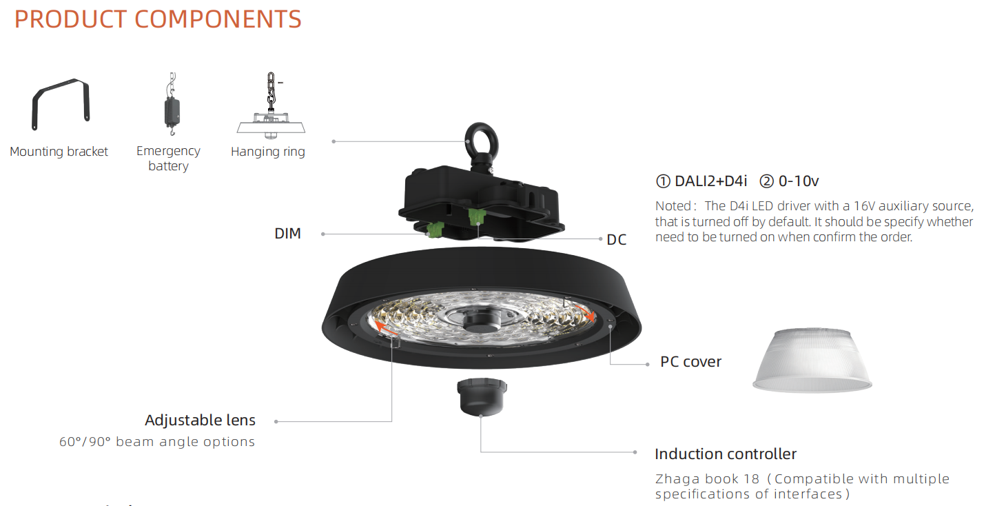 1. It is the first lamp to use non-isolated "Dali2+D4i" LED driver from industrial lighting