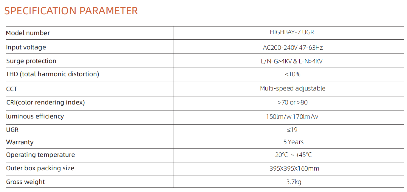 High Bay 7 UGR 200W 150W 100W Switchabl