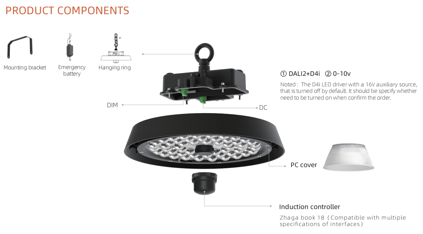 UGR<19 High Bay Light Power CCT Adjustable with Zhaga Book18 Interface